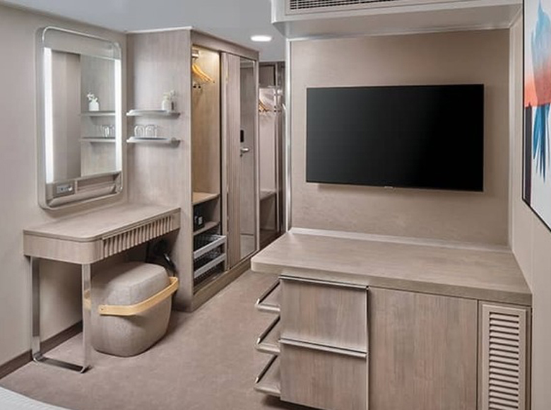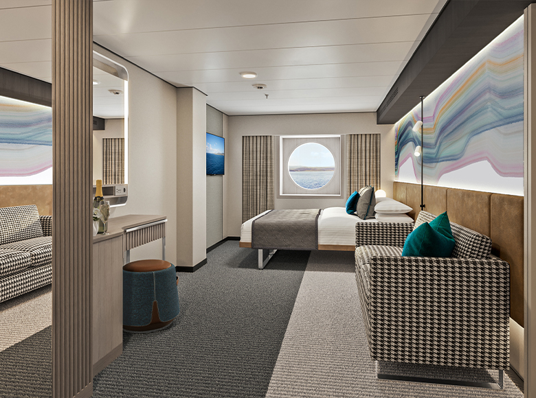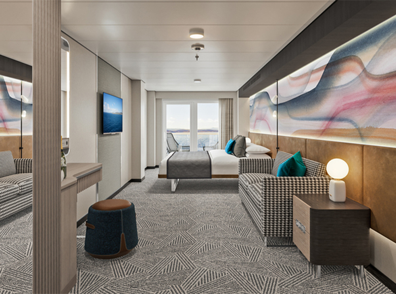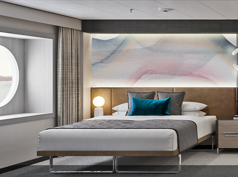 Designed to blend both indoor and outdoor experiences with stunning views of the ocean through grandiose floor-to-ceiling windows for panoramic views from the ship’s bow.