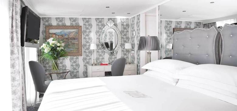 Lavishly appointed riverview suite (214 sq ft - 20 sq m) with a French balconyHandcrafted Savoir® Beds of England, built-in closet, hair dryer, safe, individual thermostat, flat-screen TV with infotainment center and satelliteMarble bathroom with Asprey bath and body products, plush towels, towel warmer, backlit magnifying mirror & heated mirror, comfortable bathrobes and slippersAdditional amenities and services include in-suite butler service, packing and unpacking assistance, in-room breakfast, daily fruit and cookie plate and an elegant evening snack, Nespresso coffee machine and fine teas, fully stocked mini bar, bottle of wine upon request, shoeshine, and free laundry service